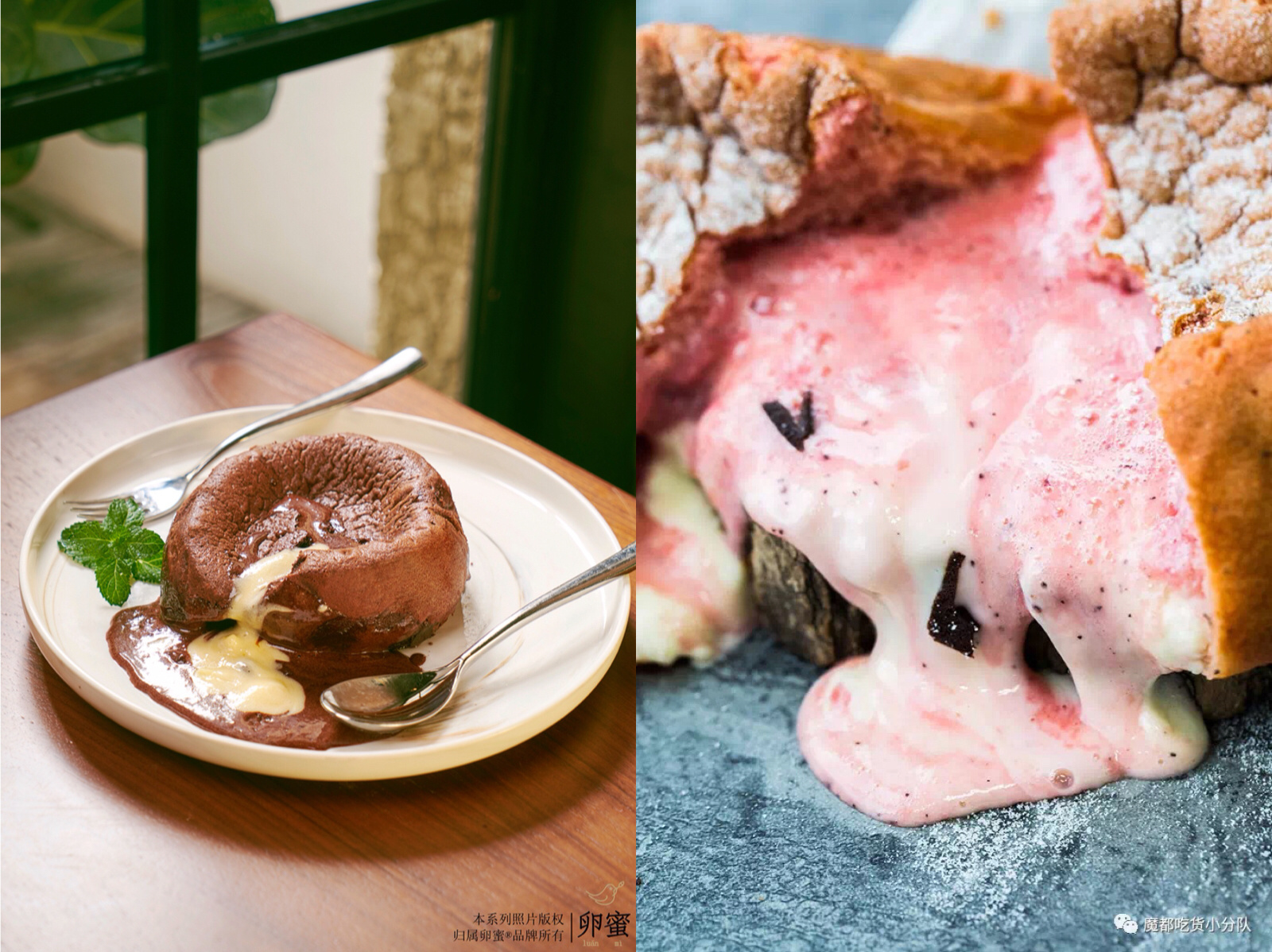 说到烘焙品牌,很多人会想到 85°C和面包新语,但卵蜜不想做集合式的烘焙店。卵蜜的产品研发思路是 SPU 做减法,即做爆款。目前门店只有这一款爆浆鸡蛋蜂蜜蛋糕,售价49元,有 6 种不同的口味。王静怡也很清楚,做单品爆款生命力不够,烘焙行业产品同质化非常严重,需要产品迭代创新的能力。卵蜜选择了时装类的迭代方式:全部下架上新。比如今年只卖爆浆蜂蜜蛋糕,8-12个月后下架,推出新的爆品。