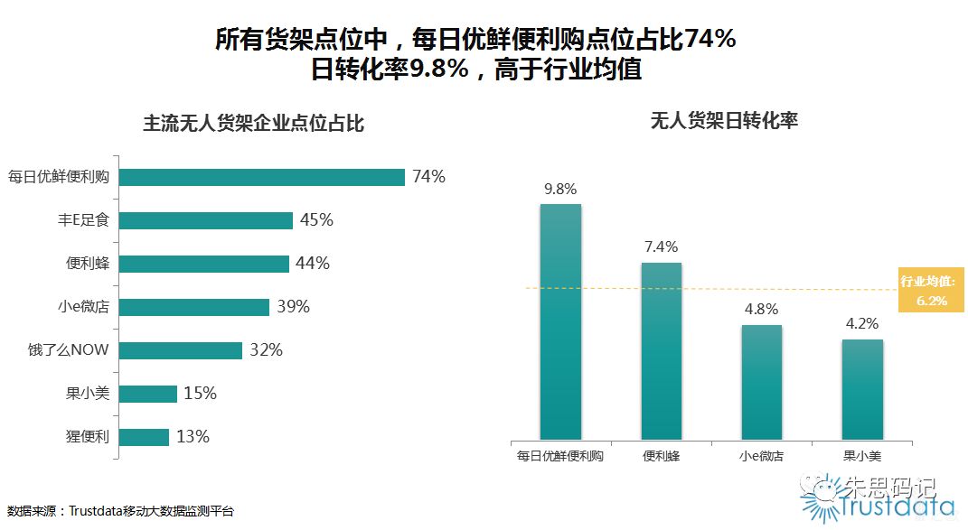 2017年,历时200多天耗费十余家投资机构数十亿元资本的无人货架大战是每日优鲜自诞生以来的第一仗,结果确是一次压倒性的胜利——其便利购团队当年 6月进场,次年6月完成市场份额55%以上点位收割并宣布获胜。造成这种一面倒的结果,其很大程度上并非竞品的地推速度存在效率问题,或是模式不够先进,而是在每日优鲜前置仓覆盖半径3公里区域内所出现的任何点位,均处在随时被收割的待命阶段,但其他平台除了货架外,几乎什么都没有。