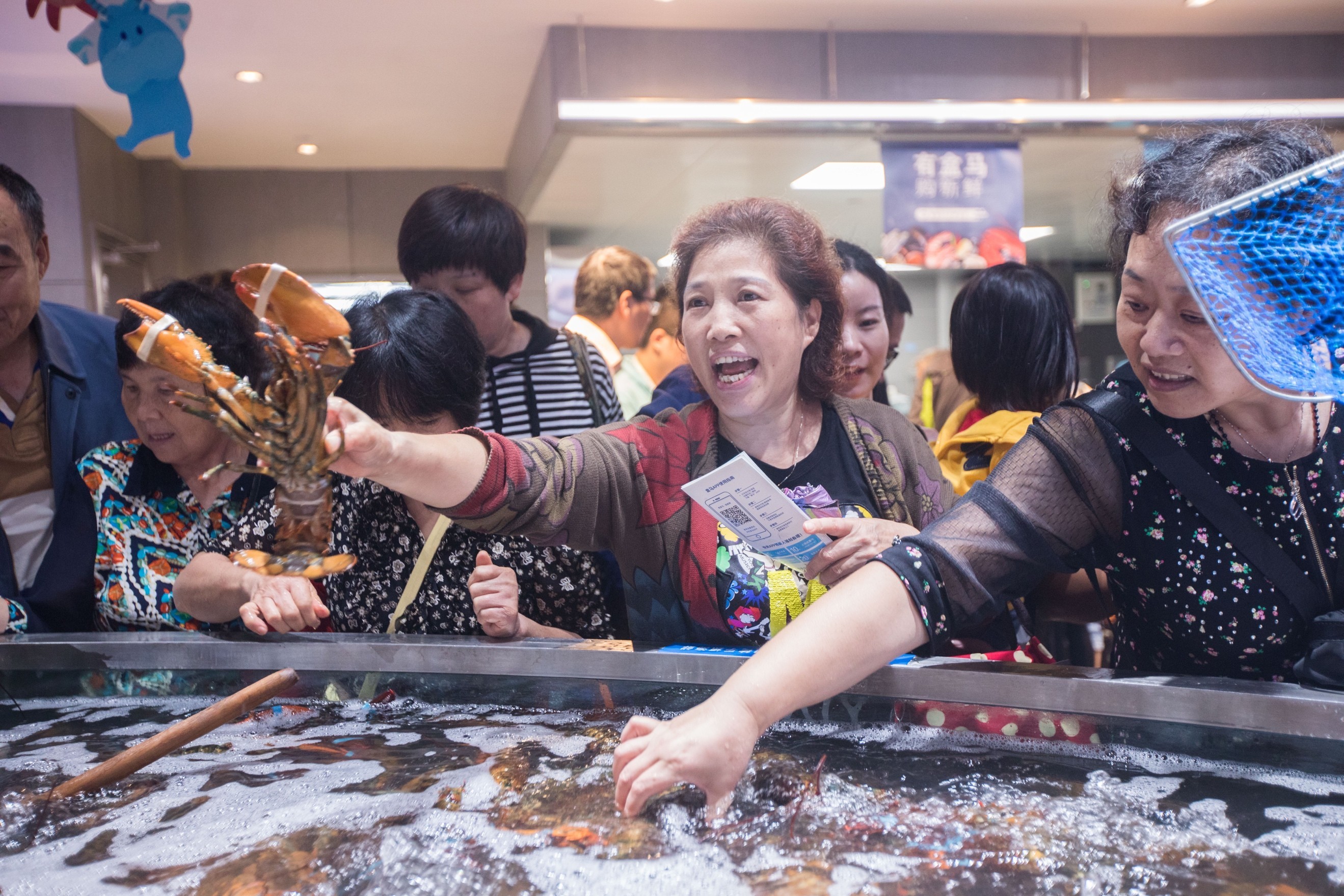 家住上海新江湾城市广场“盒区房”的居民李女士表示,以往只能在高档海鲜酒楼里才能看到这些进口海鲜,价格也很贵,但是有了盒马之后,就变成身边普通超市里就能看到的家常海鲜,“做活动的时候七八十块钱就能买到一只波士顿龙虾,家里的老人也觉得便宜,愿意买来尝尝鲜,节假日的家庭聚餐的时候也会在盒马买大只的波龙。”