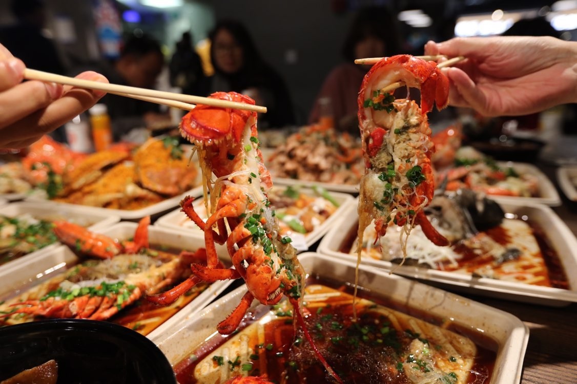 像在中秋国庆这种节假日,进口海鲜的销售通常都会遇到“井喷”。盒马鲜生上海金桥店的店长昱夏告诉记者,节假日的时候,像波龙这种热销品类,有时候一天要补几次货,有的消费者在线上下单买活的回家自己做,也有许多消费者在门店购买享受代加工服务,蒜蓉粉丝蒸和奶酪芝士焗是最受欢迎的两口加工口味。