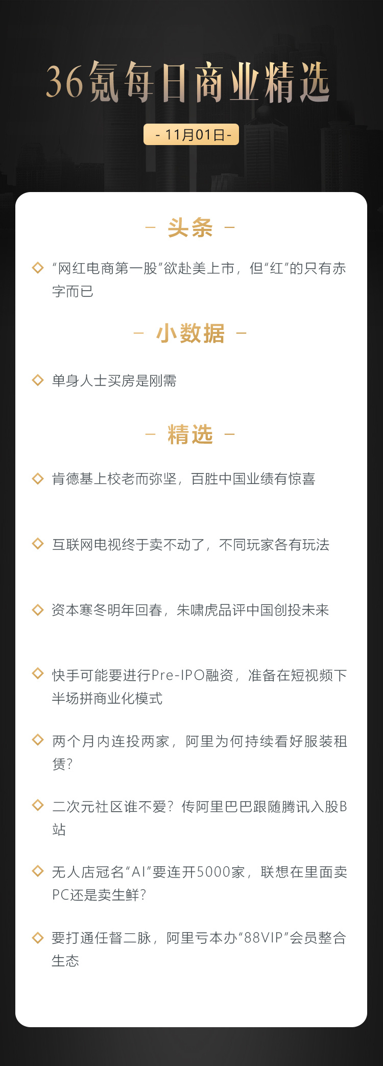 本文来自36氪付费栏目《36氪每日商业精选》——11月1日