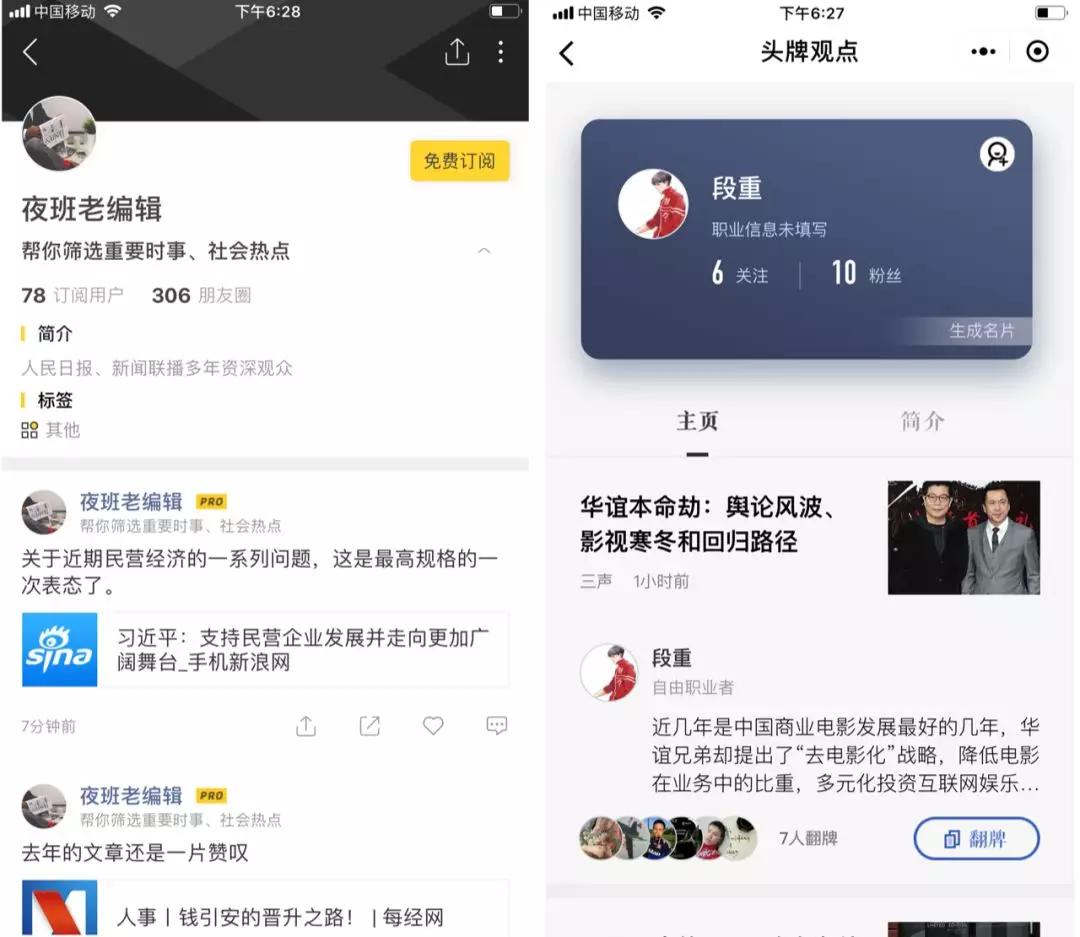 头牌观点定位是「职业人的短评论社区」,核心思路是利用互联网职场KOL发表评论来推荐、分发内容,以职场身份背书高质量文章,以此形成阅读。