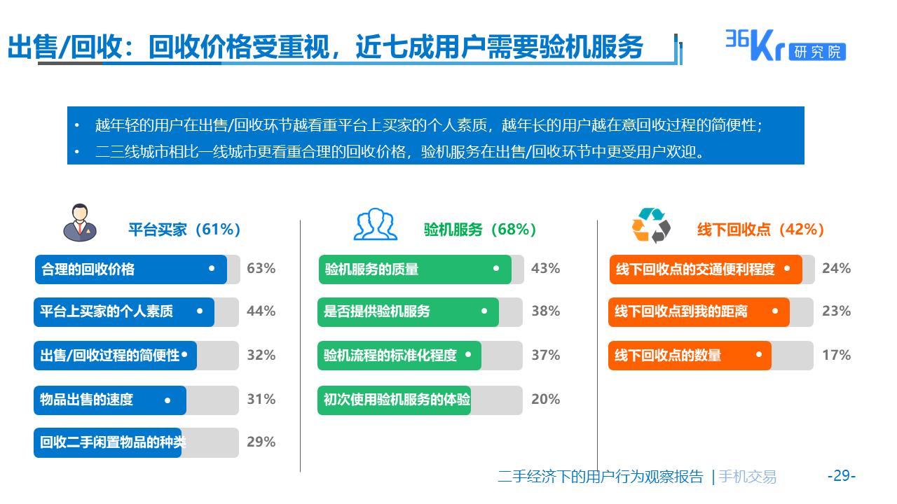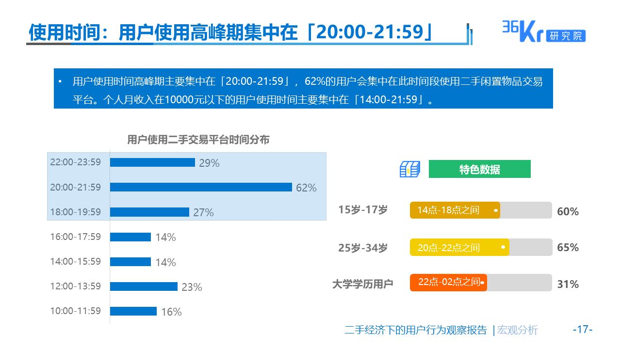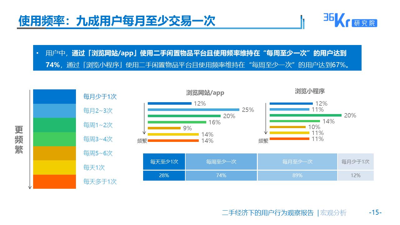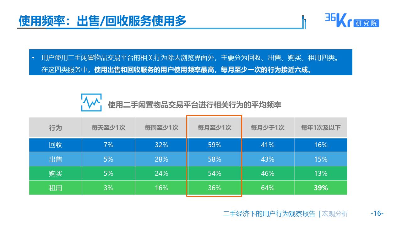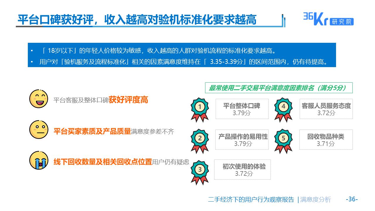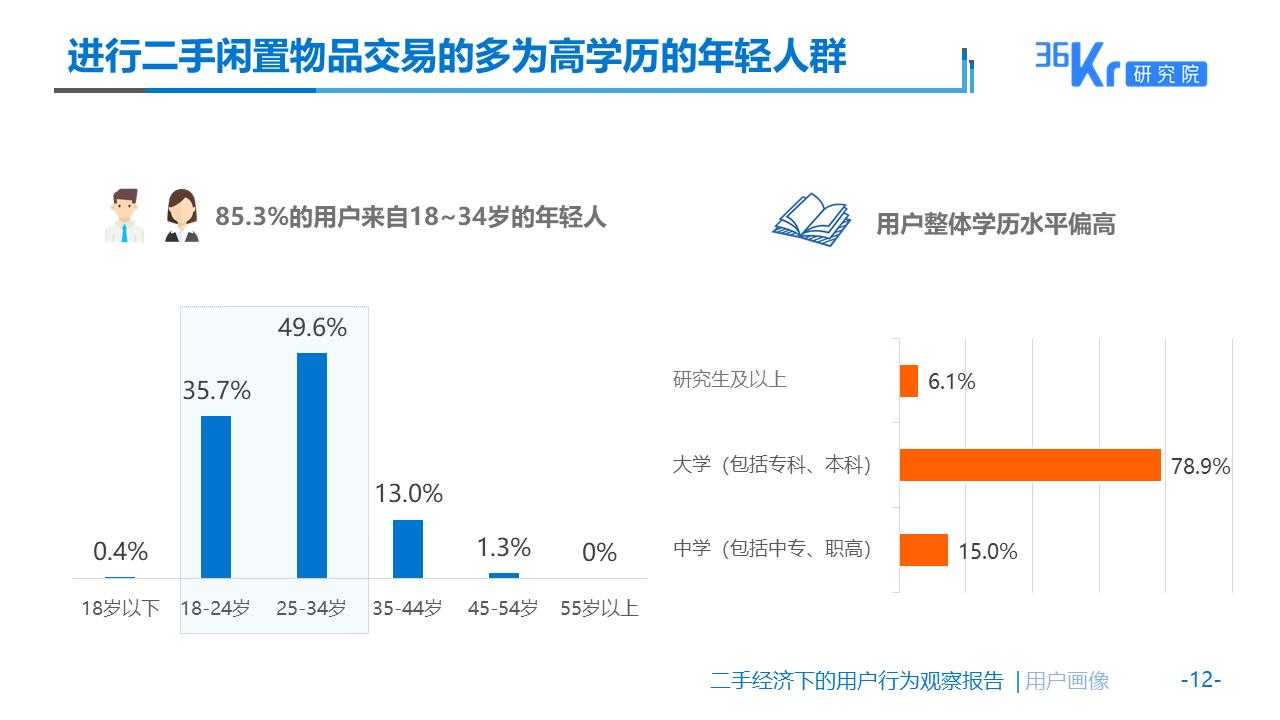从二手交易的品类来看,由手机/电脑等3C数码、图书音像产品、珠宝服饰,到个性化的母婴产品,甚至游戏交易等交易圈子小众的品类都有所涉及。为了探究二手交易行业下的用户使用现状,36氪研究院对使用二手闲置物品交易平台用户的交易行为、使用频率和满意度等维度进行了调研,发现了一些核心结论。
