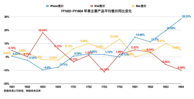 固然由于智能手机市场整体趋于饱和,iPhone的销量增长触顶是早已发生的事,苹果已改变策略,通过提价来维持营收增长:
