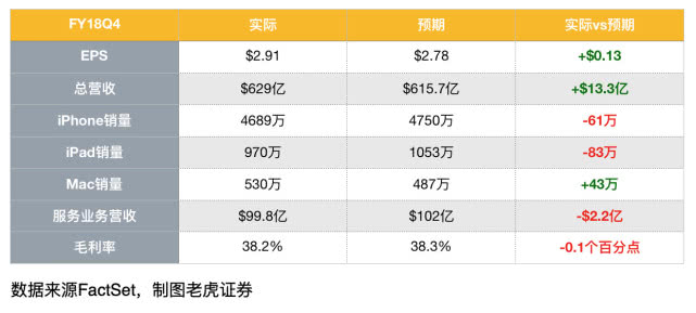 老虎证券投研团队认为,本季度苹果公布了一份综合来看处在预期低端的财报。