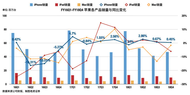 老虎证券投研团队认为,本季度尽管依靠产品售价的提升,实现了营收和盈利的超预期增长,但5大业务中,支柱产品iPhone的销量不达预期,作为转型重点的服务业务营收不达预期,iPad和Mac颓势持续,这实在难称为一份好财报。