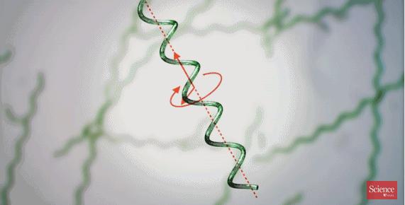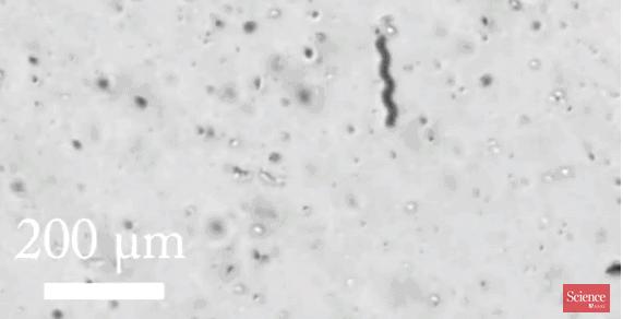 显微镜下螺旋藻微型机器人的移动(图片来源:《Science》视频截图)