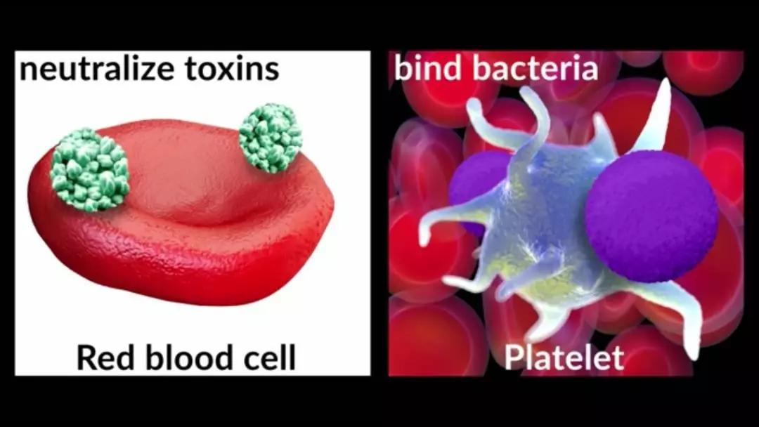 研究人员在金纳米线涂上血小板和红细胞混合物的膜,制造出这种纳米机器人。这种特制涂层使得机器人可以一次开展两种不同细胞的任务:血小板用于捆绑耐甲氧西林金黄色葡萄球菌(MRSA)病原体(一种耐抗生素的金黄色葡萄球菌菌株);红细胞则用于吸收并中和这些细菌产生的毒素。