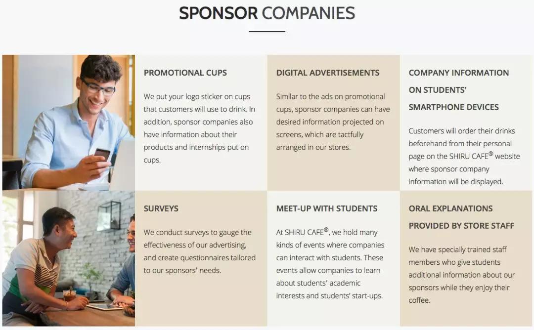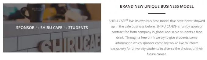 Shiru Cafe 的的商业模式是:通过“免费咖啡”为赞助商收集学生的个人信息,而赞助商也能通过这些信息为这些学生提供一个职业选择。