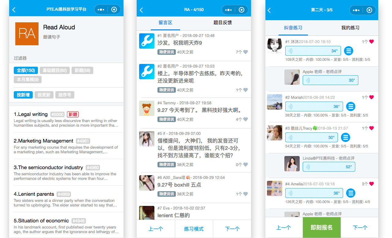 最近,36氪接触到的「PTE 黑科技」就是一家 PTE 教培创业公司。PTE 黑科技在 2017 年初上线了评测小程序,吃到了小程序的第一波红利。目前已经上线了网站、APP、小程序三端的学习平台。三端用户人数约为十几万,日活跃用户 5000 人左右。在学员分布上,黑科技 70% 的学员为澳洲考生,在澳洲市场占据领先地位。