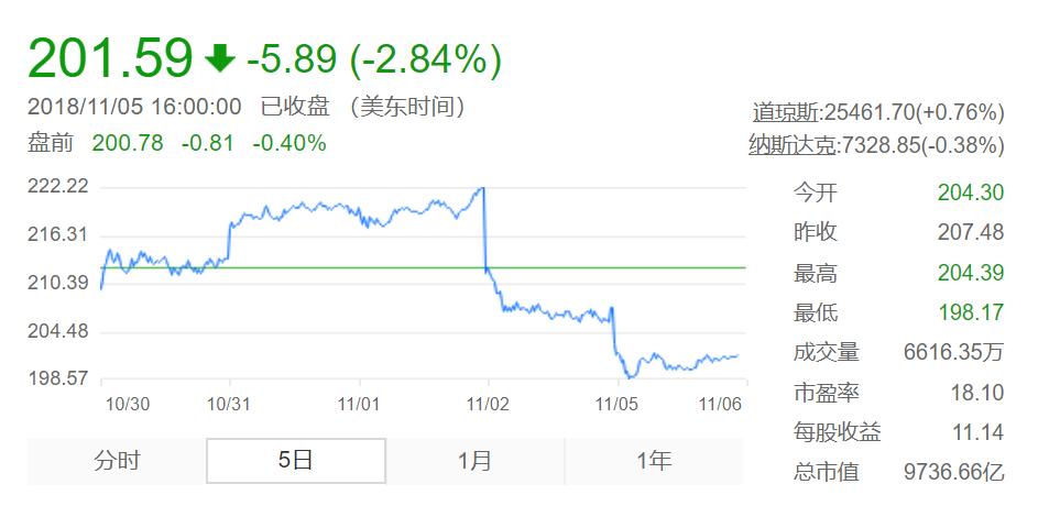 自从11月2日公布最新一季财报后,苹果公司股价就一路下跌,截至11月5日美股收盘已累计下跌近10%,创出2014年以来最大跌幅。