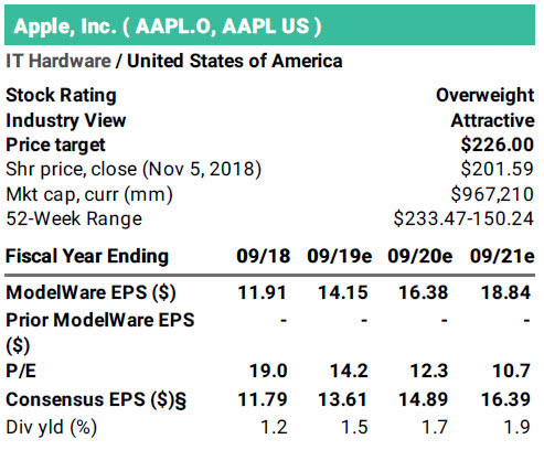 综上所述,休伯特继续维持苹果股票“增持”评级,但将目标股价从247美元调低至226美元。