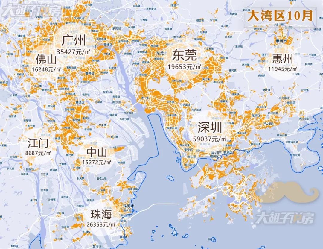 为了让粉丝对全国的楼市现状有更精准的了解,【大胡子说房】独家发布《10月热门城市房价地图》。主要分为:一线城市和重点关注城市及粤港澳大湾区城市群均价。