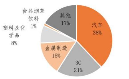 从市场规模上来看,3C产业是仅次于汽车产业的大市场,我国是3C制造业大国,全球大约70%以上的电子产品均由中国进行制造和装配,3C产业的工业机器人可以有力的降低人力成本、提高工作效率、并降低成本。相比之下,汽车产业成熟度较高,增量空间有限,且被四大家族基本垄断。