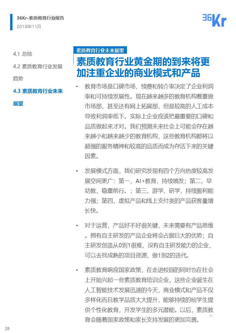 在未来,素质教育将如何发展呢,请看《玉不琢,不成器》素质教育行业研究报告详细为您解读: