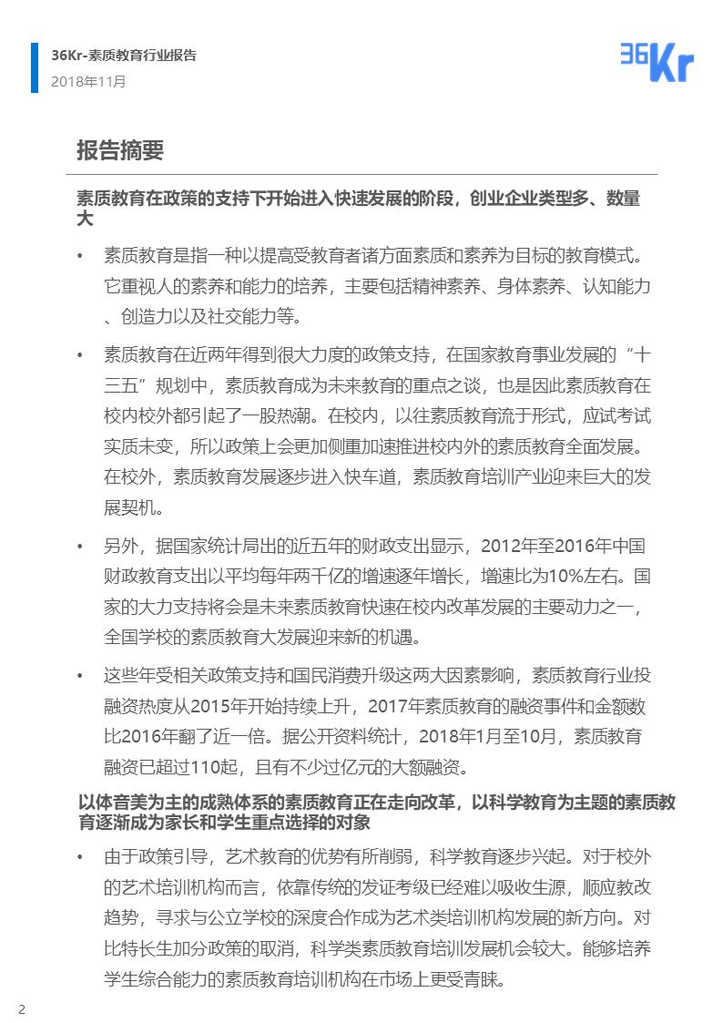 同时,中国广大家庭消费水平的提高,使得素质教育机构受到家长和孩子们越来越多的关注。