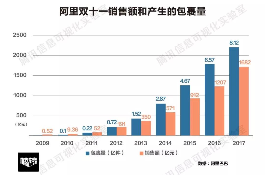 在即将到来的第十个“双十一”前夜,阿里巴巴CEO张勇预测,仅天猫一家平台产生的包裹量将会超过10亿件,比去年增加20%以上。如果算上京东、拼多多、苏宁易购、唯品会等平台,今年的包裹数又将是一个天文数字。