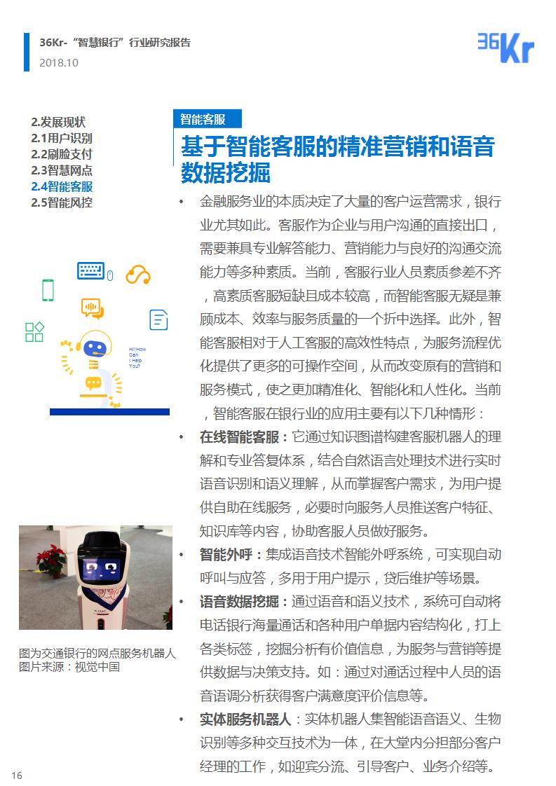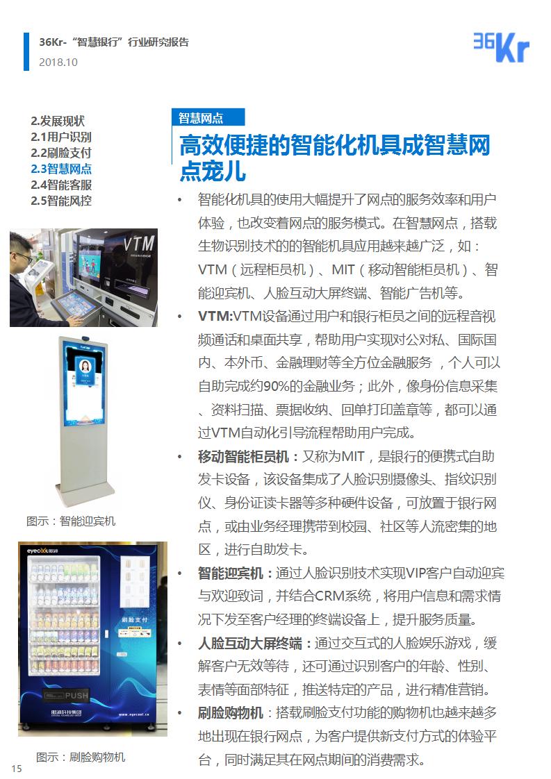 一是智能化的感知和度量。与以往直接的询问或根据历史服务数据做简单分析的方式不同,智慧银行通过一系列的智能化设备,在用户毫无察觉的情况下感知用户需求、情绪、倾向偏好等,从而为进一步的营销和服务提供支持。