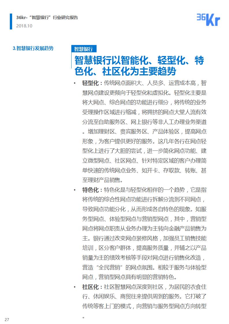 回顾过去几年,网络银行、数字银行、虚拟银行、智慧银行等说法不断更新人们对银行的认知。这些被赋予了时代特色的名词,虽然在概念的界定上并不完全清晰,但它足以表明银行业追随技术发展与时俱进的步伐。在当前这个智能、高效、万物互联的时代背景下,银行业的发展也呈现智能、高效和便捷的特征,其网点建设则表现出明显的智能化、轻型化、特色化和社区化的趋势。