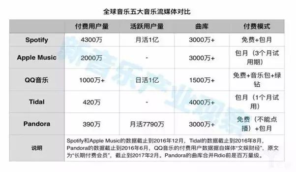 全球音乐五大音乐流媒体对比: