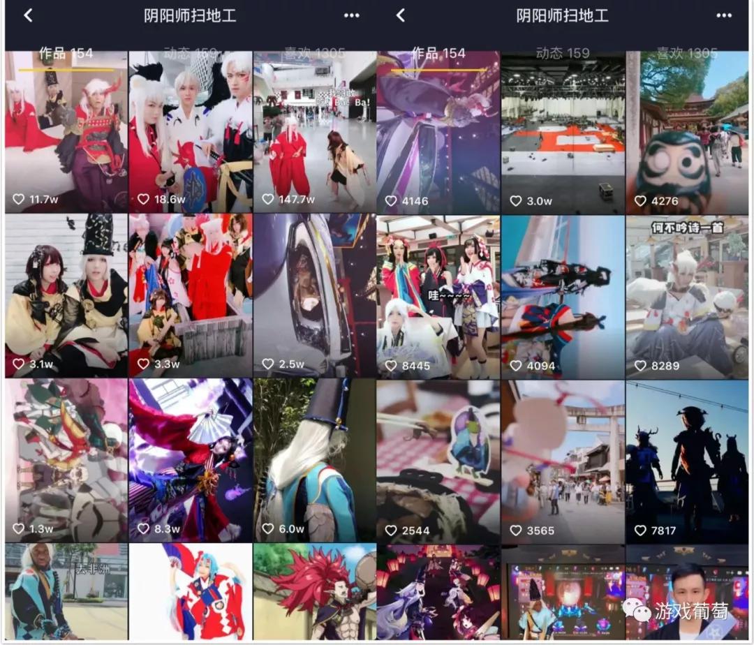 《阴阳师》旗下的抖音账号“阴阳师扫地工”有着超65万的粉丝,单视频最高点赞量147万,平均点赞超过5万。参考以往的作品,点赞10w+的有10部之多。不过,在CJ期间拿下67万赞的成绩后,至今它再也没有创作过10w+了。并且上一部点赞过万的视频,还要追溯到国庆节期间。更多时候,它的成绩在一万的基准线上下波动,平均效果低于早期。