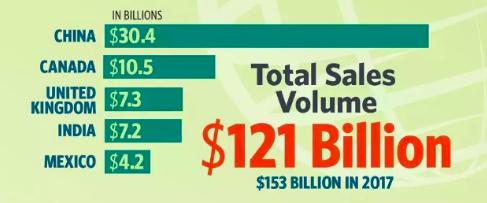 以全球第一大经济体美国的房产市场为例,数据显示,2017年,中国、加拿大、英国、印度和墨西哥这5个国家的买家占据了外国投资者在美国房地产市场投资的半壁江山,总投资额达到596亿美元,而全美房产市场在2017年共吸引了1210亿美元的外国投资。