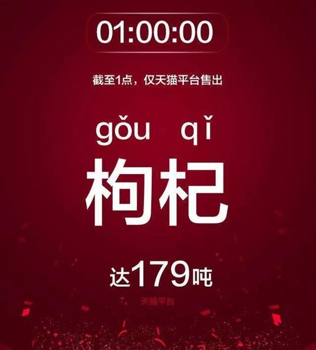 179吨枸杞和20万瓶霸王防脱,一天就卖了。这是2017年双十一那天的天猫数据。