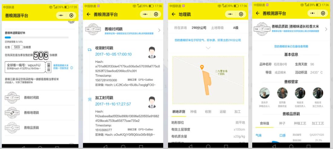 对于消费者来说,可通过扫描大米包装袋上的二维码,在“善粮味道”小程序上,查看大米的时间戳、地理戳、品质戳等信息。
