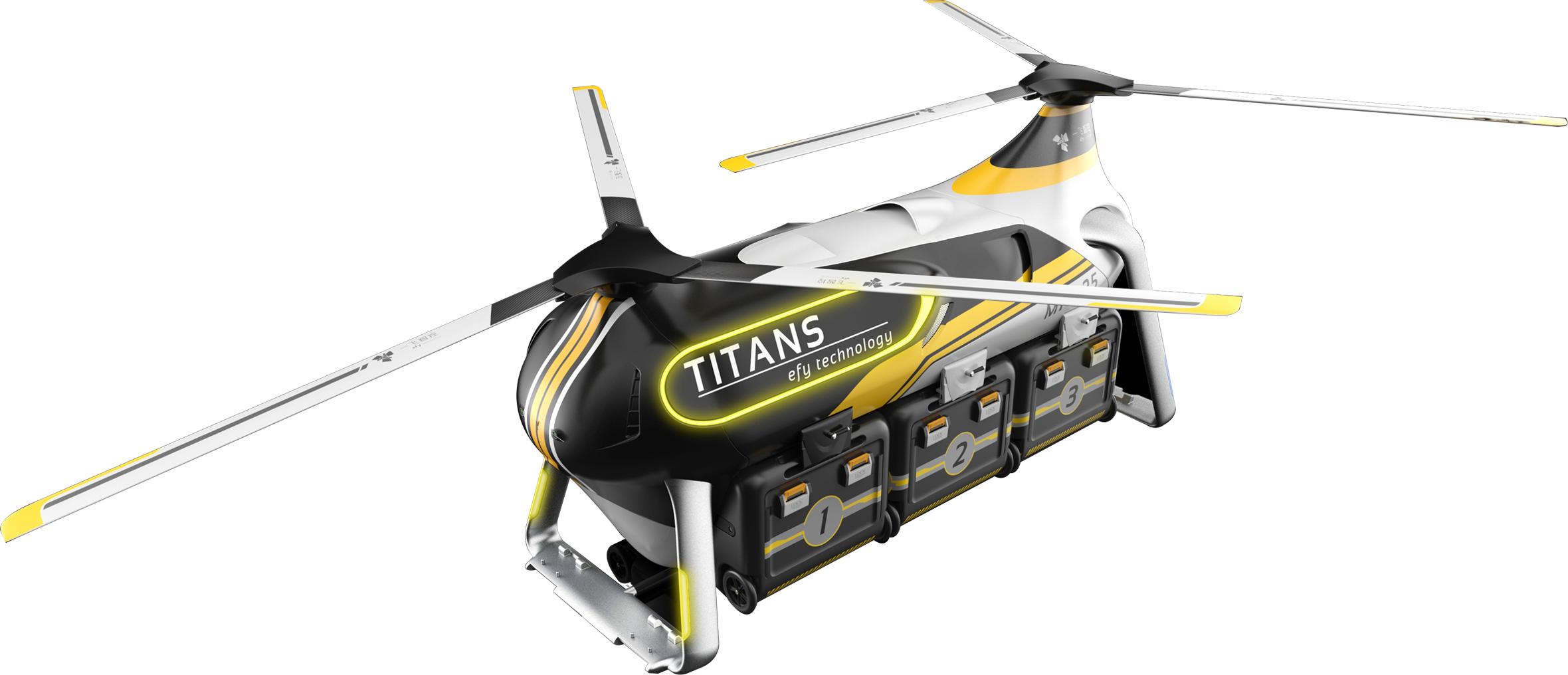 “泰坦”无人运输直升机面向的是支线场景,最大起飞重量达700kg,任务载荷重量300kg,巡航速度120km/h,最大飞行速度150km/h,在满载情况下,续航时间达2h,抗风能力6-7级,可在陆运交通不发达、多山、高海拔地区等场景使用。