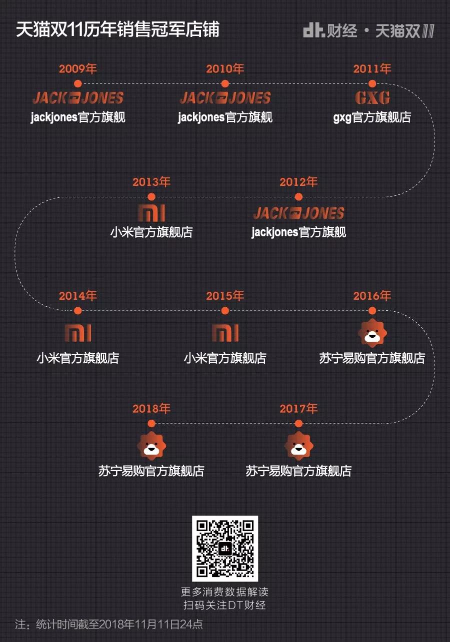 如果你还对最初几年的双11有些记忆,一定不会忘记男装品牌杰克琼斯在这场购物大战里风光无限的样子。杰克琼斯是首届双11的销售冠军,之后又在2010年和2012年拿下全网第一。