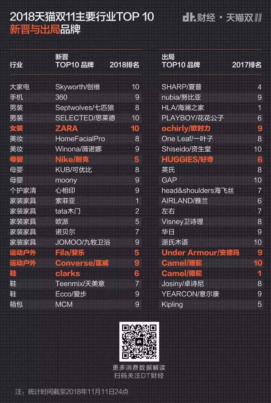 2018年,更追潮流的姑娘们将ZARA送入女装行业TOP 10,老牌女装欧时力则跌出前列。凭借着不错的质量,耐克的婴幼儿鞋服获得年轻爸妈们的欢心,被你们捧上了母婴行业高位。