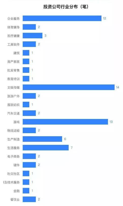 以王思聪100%控股并担任董事长的北京普思为例,公司成立至今共计79起公开投资事件,就分布于22个行业,以文娱传媒、游戏和企业服务为主。