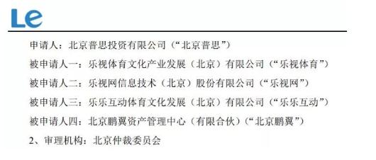 乐视网在公告中披露了四起公司涉及诉讼(仲裁)的案件情况,第一起就是北京普思发起的仲裁申请。
