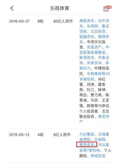 每经小编(微信号:nbdnews)注意到,乐视体育自2014年从乐视网独立后,2015年5月完成A轮融资8亿元,投资者就包括王思聪的普思资本和马云的云锋股权投资等。