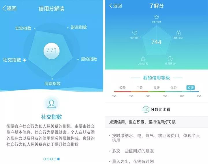 微信的优势在于庞大的用户量和熟人关系链,但若是根据微信支付分的介绍,社交关系又不包括在评估维度内,而微信支付虽然普及,但多用于小额交易,即使是微粒贷,至今也仍未完全开放,在金融数据上的积累显然不如支付宝。