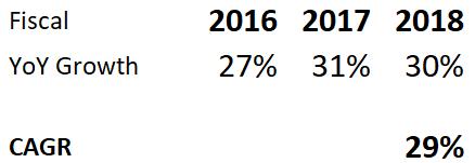 下表是公司最近三年的增长率,今年第四季度以公司指引数据计算。