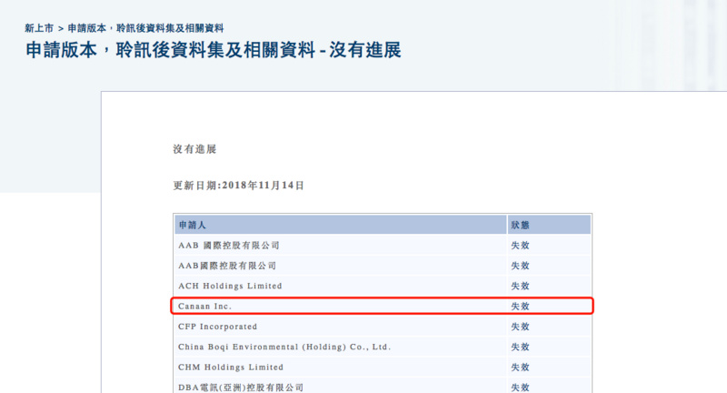 星球日报记者查阅香港证券交易所网站 (hkex),在港交所网站的「聆訊後无進展」栏目中,嘉楠耘智以“失效” 状态出现在更新名单中,网站显示,嘉楠耘智在今年 5 月 15 日提交第一次上市申请。