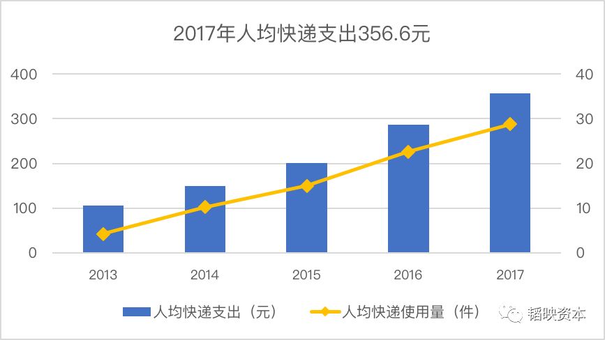 不管是商务文件往来,还是网上购物,快递已经成为工作和生活的必需品。据国家邮政局,2017年人均快递使用量28.8件,比2016年多了6件;人均快递支出356.6元,比2016年提高了69.2元。