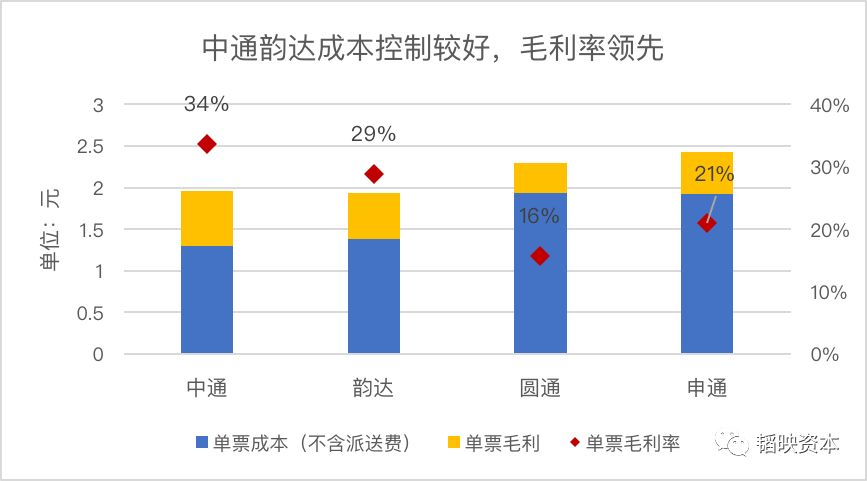 而圆通的单票毛利率明显低于其他三家,主要是因为给予供应商较大的补贴力度,导致单票毛利大幅下滑。