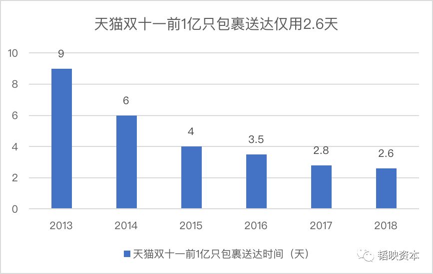 今年双十一当天,主要电商企业共产生快递物流订单13.52亿件,同比增长25.12%。巨大的快递量并没有让速度慢下来,今年天猫双十一前一亿只包裹的送达时间仅为2.6天,也就是说平均每一秒有445只包裹被送达。