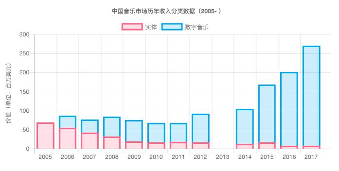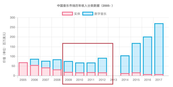 但是,从IFPI的数据看,2011年之前,数字音乐的收入还是相对稳定的,到2012年开始才快速扩大。