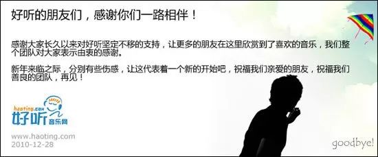 2010年12月14日,中国文化部发出通知称,决定进一步清理整治违规网络音乐网站。随后,包括当时最大的在线音乐网站“好听”等在内的一大批音乐网站先后关闭。