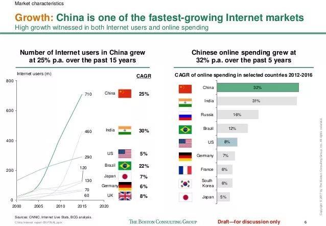 从上图中可以看到,2005年开始,中国互联网进入高速增长期。有一种说法是,2005年到2015年,是中国互联网的黄金十年。