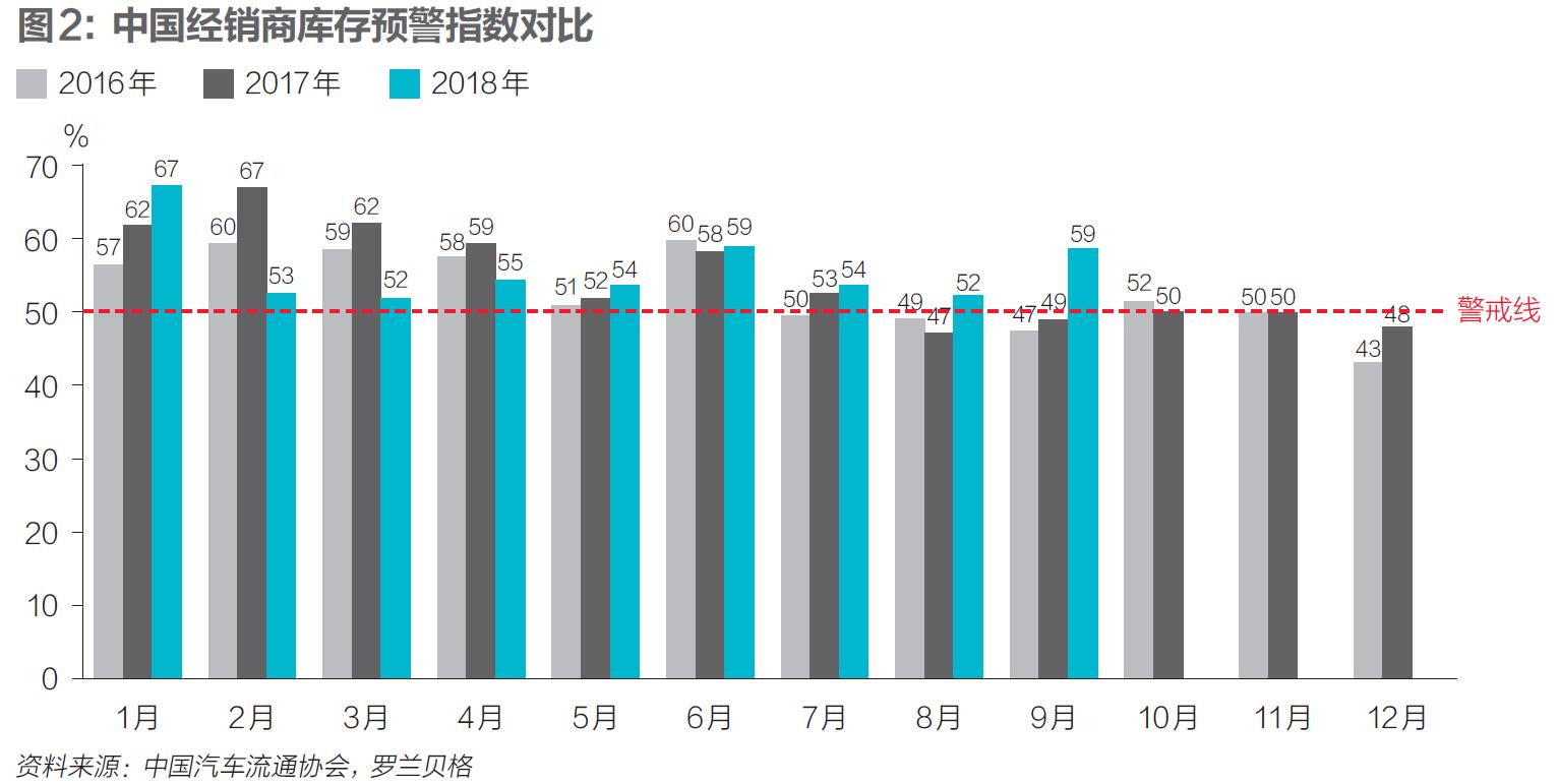 以中国市场为例,10月31日,中国汽车流通协会发布月度数据显示,10月汽车经销商库存预警指数为66.9%,持续十个月位于警戒线(50%)以上。“金九”库存预警指数没有延续此前下降的趋势,反而回升至高位,而过去两年同期,经销商库存预警指数均位于50%以下。
