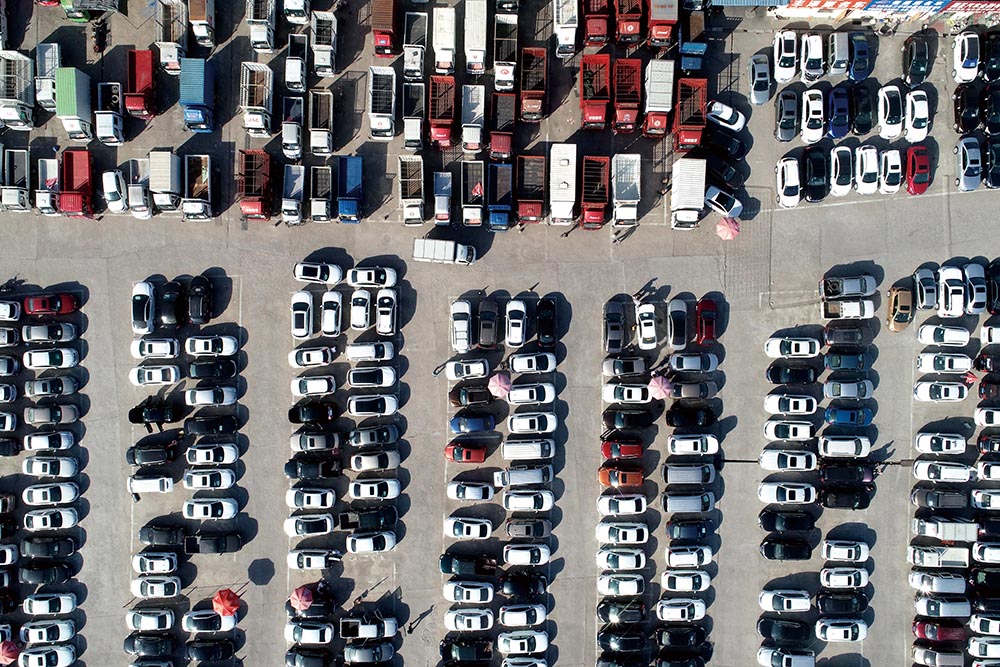 湖北襄阳市一家二手车交易市场停满了等待出售的车辆。图/视觉中国