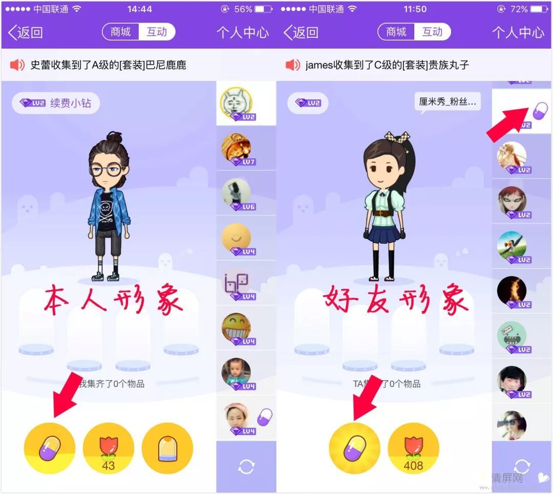 厘米秀其实就是 PC 端上的 QQ 秀 在移动端的延伸,用户可以定制不同的卡通形象,并在聊天时与好友互动,深谙二次元文化的 95 后 00后还会 YY 出各种玛丽苏情节的厘米秀小剧场。