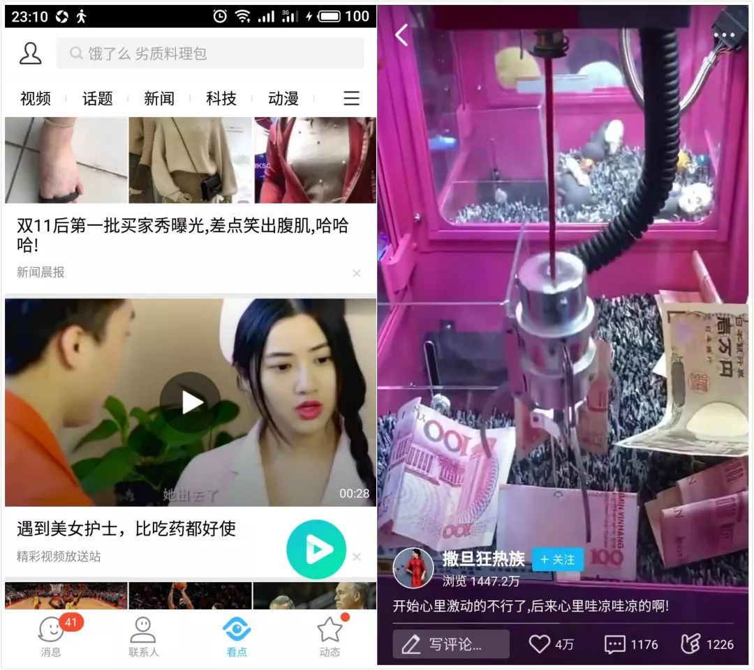 但并不是所有年轻人都能接受 QQ 看点推荐的内容,爱范儿采访过一位 15 岁的 QQ 用户被问及为什么,她发来了这样两张截图: