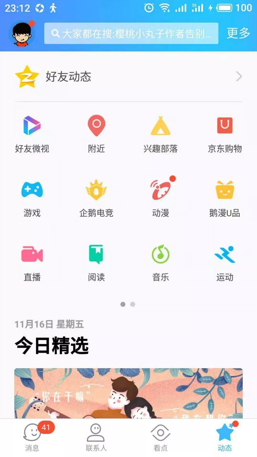 ▲ QQ 看点的入口被放到了 QQ 的一级菜单