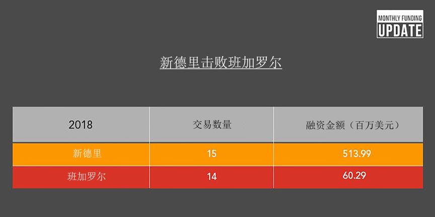 本月,新德里再次击败班加罗尔。印度市场在15笔交易中融资达到5.1399亿美元,而班加罗尔在14笔交易中融资达到6028万美元,位居第二。而9月份,班加罗尔在23笔交易中融资达到8.9366亿美元,新德里则凭借22笔交易完成15亿美元的融资额。