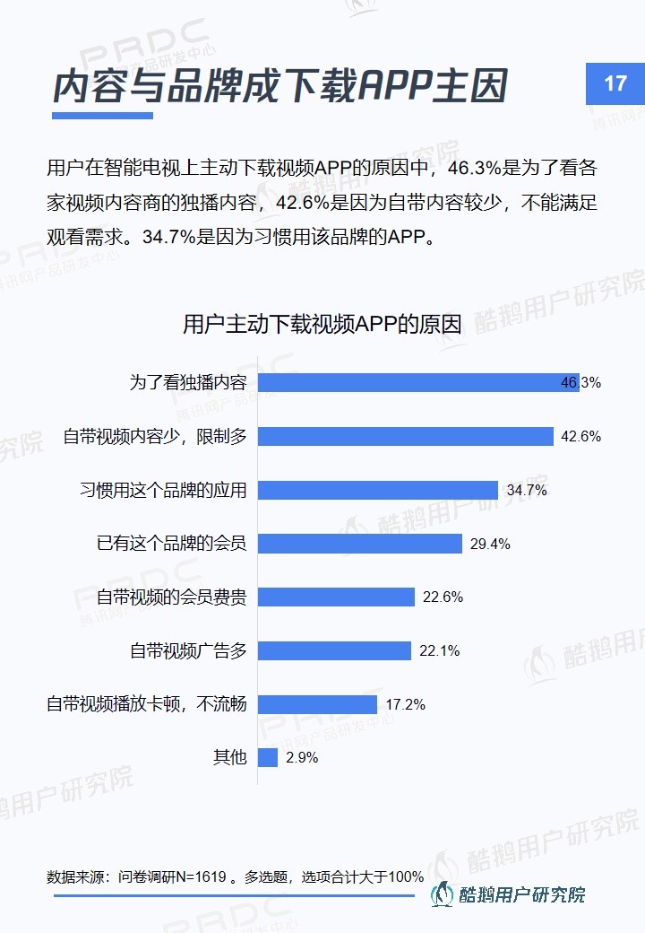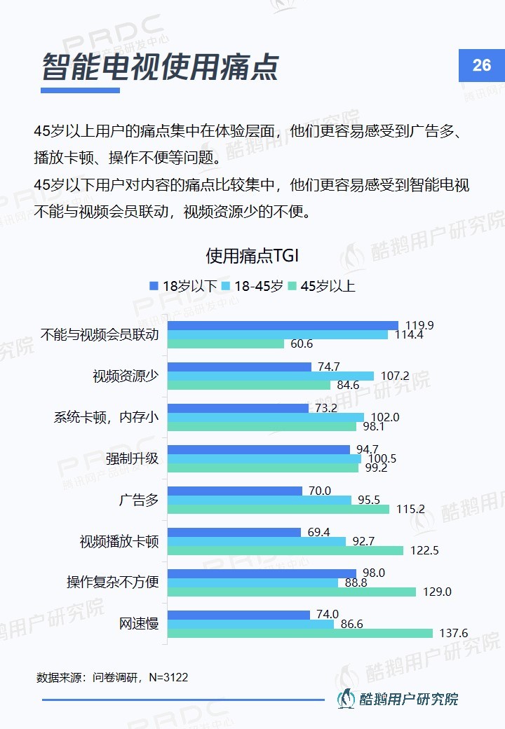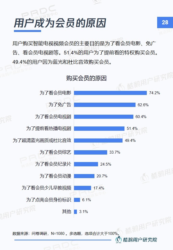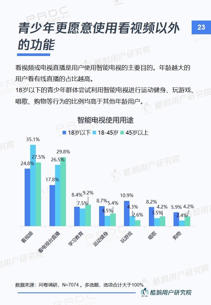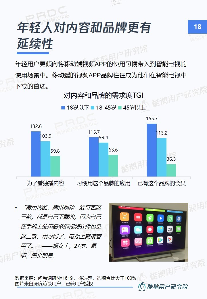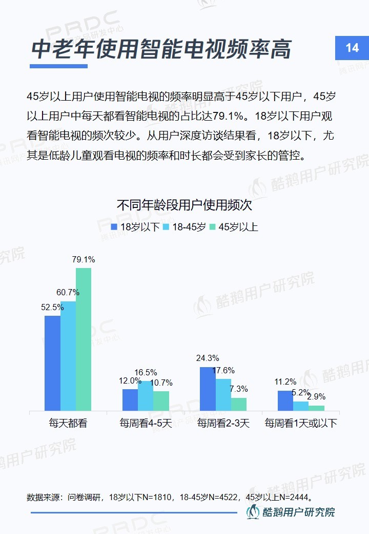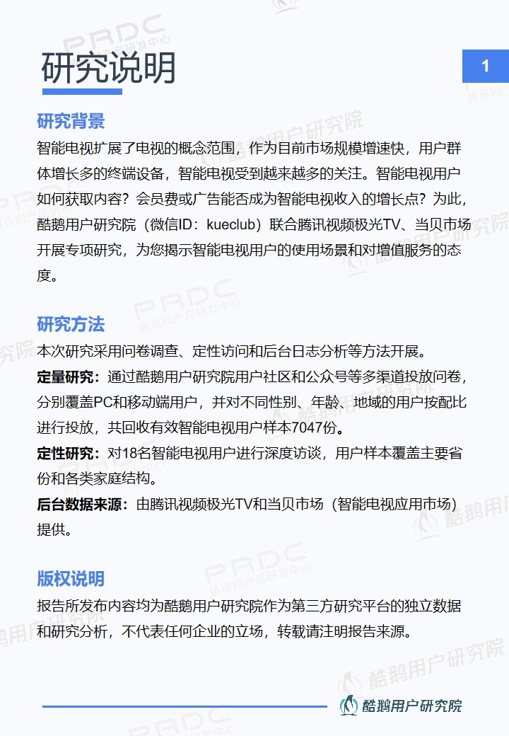 智能电视扩展了电视的概念范围,作为目前市场规模增速快,用户群体增长多的终端设备,智能电视受到越来越多的关注。智能电视用户如何获取内容?会员费或广告能否成为智能电视收入的增长点?为此,酷鹅用户研究院(微信ID:kueclub)联合腾讯视频极光TV、当贝市场开展专项研究,为您揭示智能电视用户的使用场景和对增值服务的态度。